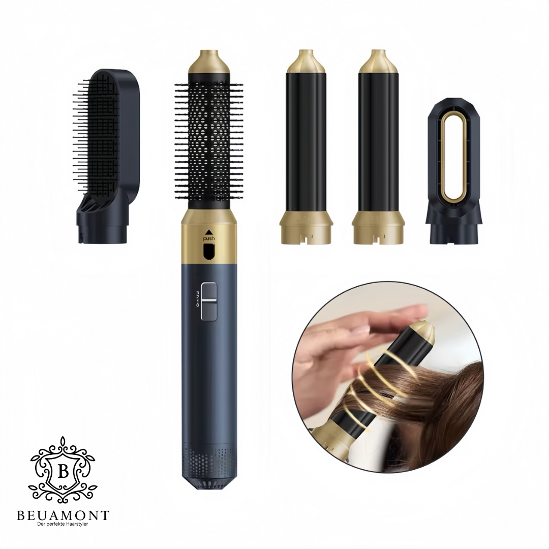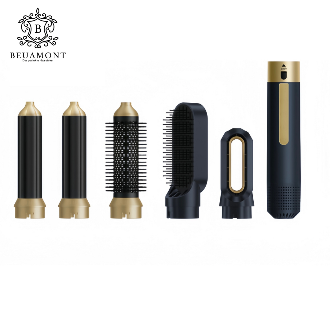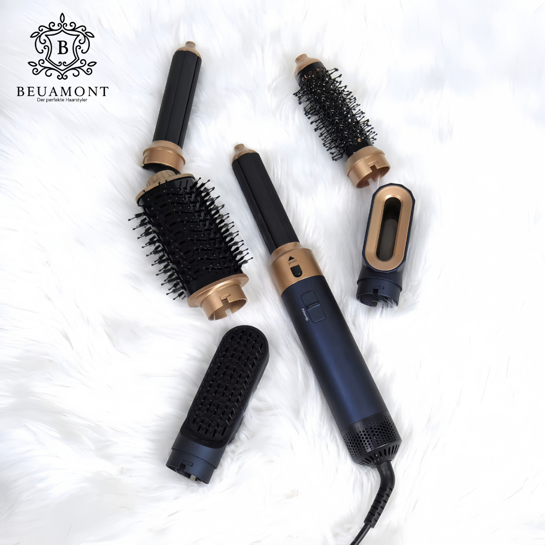 Entfalte die volle Schönheit deiner Haare – mit dem Beuamont™ 2.0 - 5 in 1 Hairstyler, der innovativen All-in-One-Lösung für Styling, Volumen und Glanz. Entwickelt als leistungsstarke und preisgünstige Alternative zum Dyson, vereint er modernste Technologie mit elegantem Design.