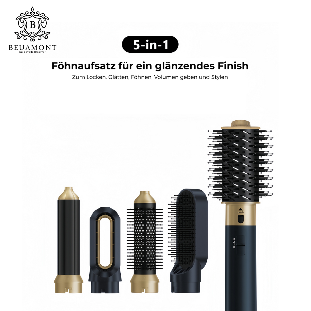 Der Beuamont™ 2.0 – 5-in-1 Hairstyler ist die smarte Lösung für all deine Haarstyling-Bedürfnisse und ersetzt gleich mehrere Geräte. Mit nur einem Tool kannst du: