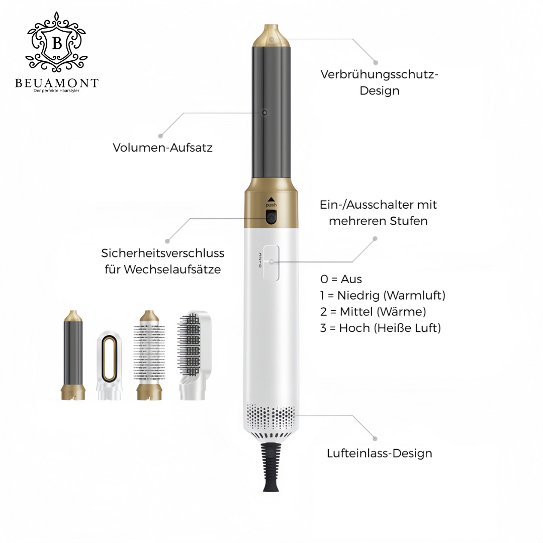 Mit dem Beuamont™ 2.0 – 5 in 1 Airstyler erhältst du eine hochwertige und zugleich kostengünstige Alternative zu überteuerten Marken – ohne Abstriche bei Leistung oder Funktionen.