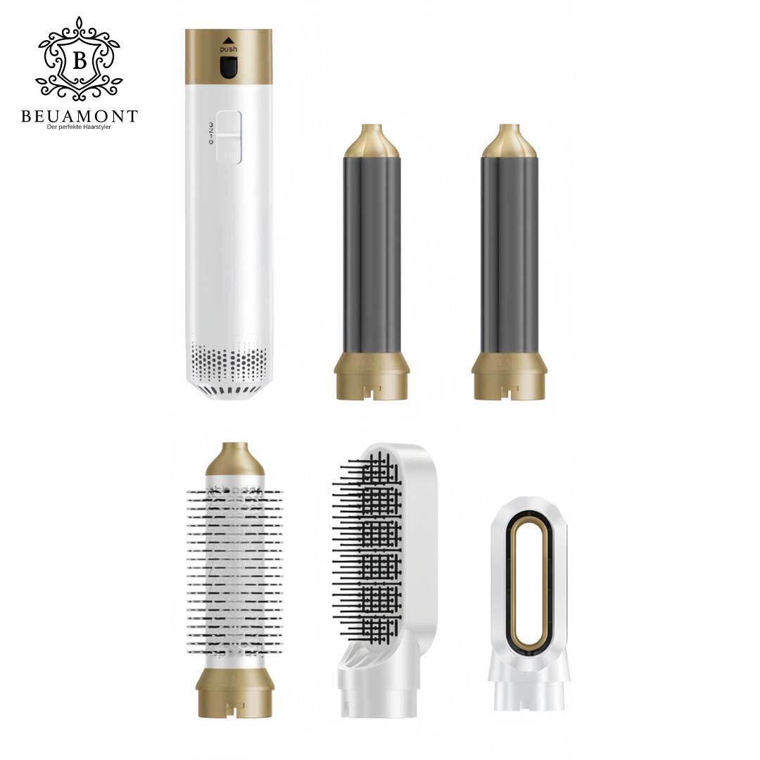 Entfalte die volle Schönheit deiner Haare – mit dem Beuamont™ 2.0 - 5 in 1 Hairstyler, der innovativen All-in-One-Lösung für Styling, Volumen und Glanz. Entwickelt als leistungsstarke und preisgünstige Alternative zum Dyson, vereint er modernste Technologie mit elegantem Design.